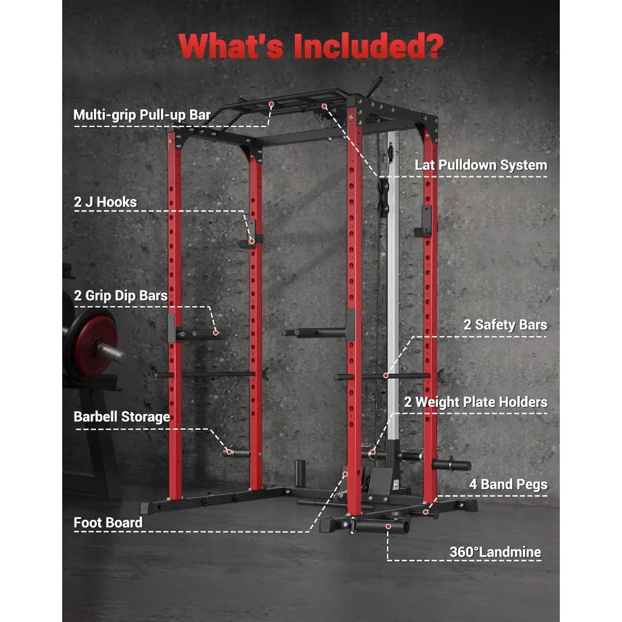 🏋️‍♂️ Power Cage Power Rack for Home Gym – Multi-Functional Squat Rack with Pulley System, 1200LBS Weight Capacity
